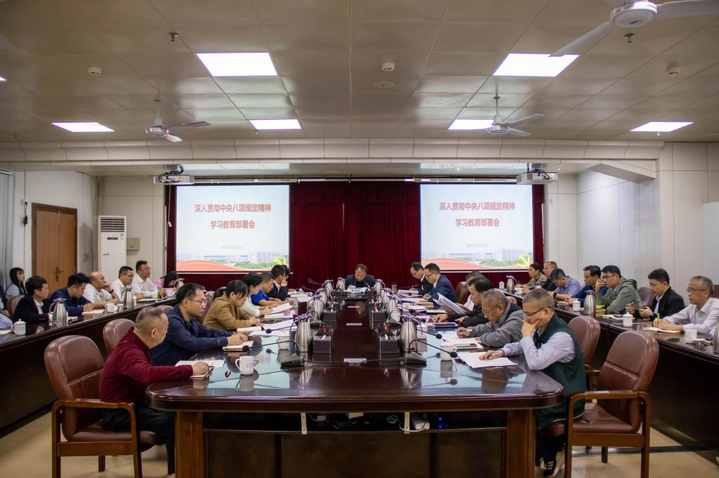 会议指出,党中央决定在全党开展深入贯彻中央八项规定精神学习教育,意义重大、影响深远。习近平总书记高度重视学习教育,亲自谋划确定主题,发表重要讲话,作出重要指示,为开展学习教育指明了方向、提供了根本遵循。要切实把思想和行动统一到党中央决策部署上来,深学细悟习近平总书记关于加强党的作风建设的重要论述,准确领会中央八项规定及其实施细则精神的核心要义、实践要求,传承弘扬党的光荣传统和优良作风。要强化组织领导,压实工作责任,注重统筹兼顾,做好宣传引导,推动中央八项规定精神在我校落地生根。