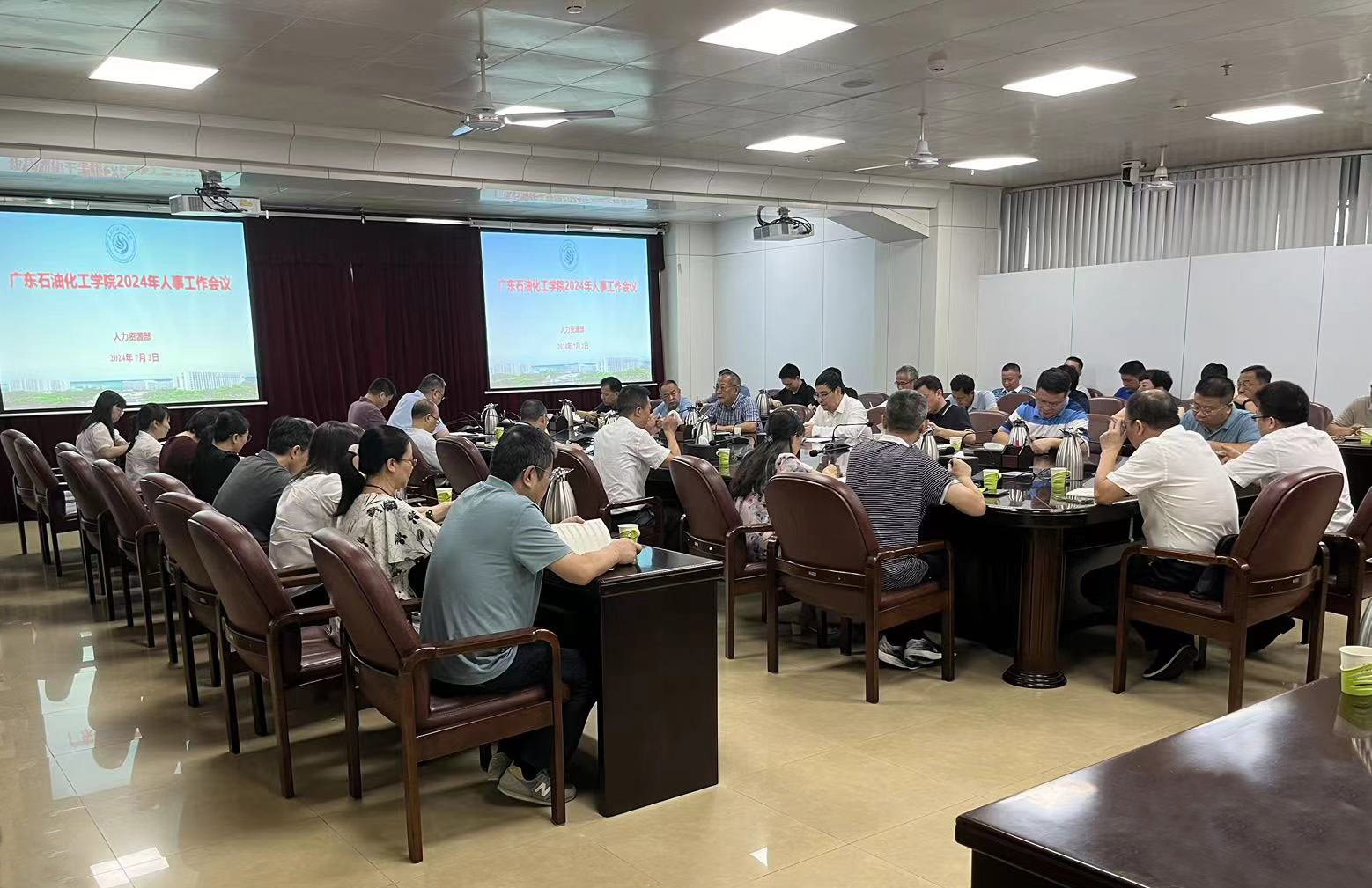7月2日上午,广东石油化工学院召开2024年人事工作会议。全校各部门负责人、各二级学院党政负责人、人力资源部、发展规划部科级以上干部参加会议。学校党委常委、副校长孙国玺出席会议并讲话。