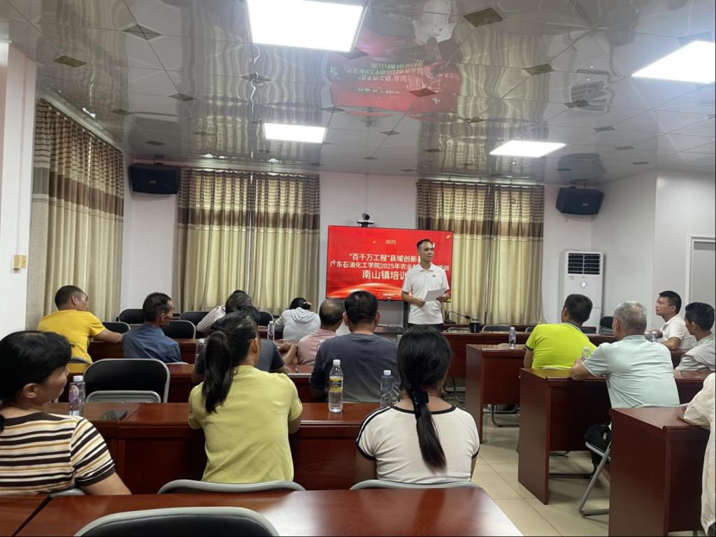 2025年8月21日,广东石油化工学院结对徐闻县举办的“2025年农业种植技术培训班”又在南山镇乙神村委会开展两场培训。本次培训是广东石油化工学院驻南山镇农村科技特派员项目助农培训,也是学校结对徐闻县开展“双百行动”和“百千万工程”县域创新基地建设的重要内容,旨在助力南山镇高良姜和香蕉种植科技创新,提高农民的种植技能,促进镇域经济发展。