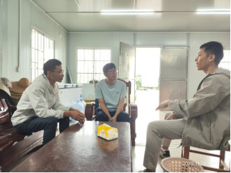 在众润农业的230亩荔枝种植基地,团队首先实地察看了岭丰糯、仙进奉、冰荔等主栽品种的整体生长态势和冬梢生长状态。企业负责人戴福浩向特派员反映目前部分荔枝树已出现零星冬稍萌发迹象,但基地面积较大,荔枝品种较多,整体控梢时机难以把握,且人工控梢不仅耗时费力,还易出现药剂喷洒不均、控制程度不一致等问题,需要得到专业、系统地指导。