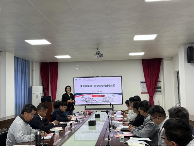 随后,党委书记韦明肯代表生物与食品工程学院,从宏观层面全面汇报了生物与医药专业硕士点的建设进展情况。他重点围绕硕士点申报的政策依据与学科基础、建设过程中的阶段性成果展开阐述,并直面当前在师资梯队建设、高端科研平台支撑等方面存在的问题与挑战,以客观的态度呈现了硕士点建设的真实态势。