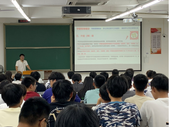 刘丙伟老师向新生讲解学校升留(降)级规定