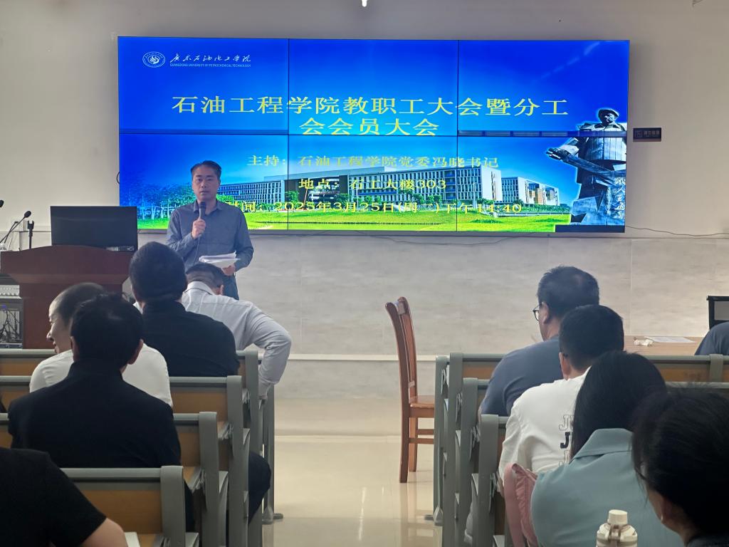 2025年3月25日下午,石油工程学院教职工大会暨分工会会员大会在石工大楼303会议室隆重召开。会议由学院党委书记冯晓主持,全院教职工及分工会会员齐聚一堂,共商学院发展大计。