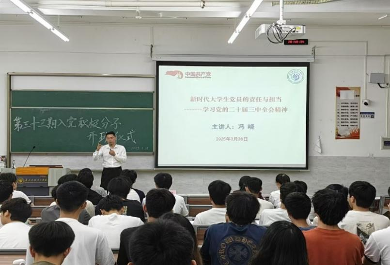 开班仪式结束后,冯晓为学员们讲授“思政第一课”,他以《新时代大学生党员的责任与担当——学习党的二十届三中全会精神》为题,深入剖析解读了党的二十届三中全会的会议精神,使学员们深刻认识到新时代大学生党员的责任与担当。