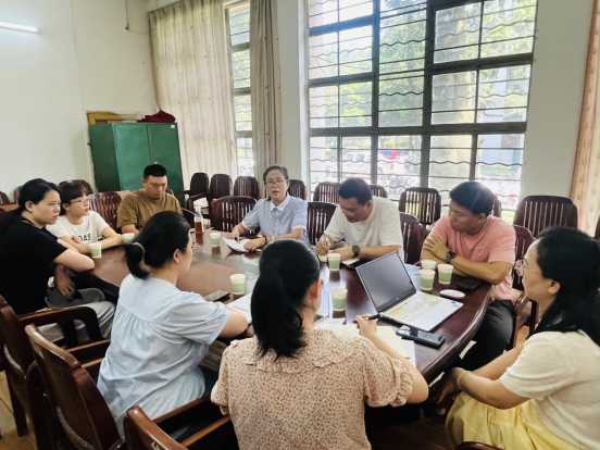 6 月 6 日上午,学校大学生心理发展指导中心周乐泓、理学院辅导员钟书文老师到体育学院调研检查学生心理健康教育工作。学院党委书记陈东亮、党委副书记曾彩路、辅导员、班主任参会。