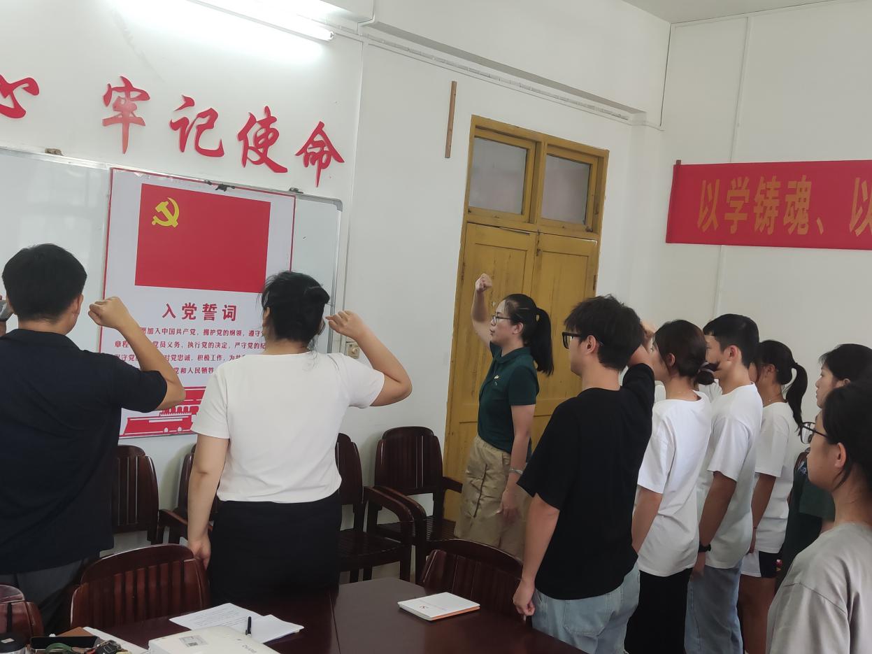 接着曾彩路同志亲自为新入党的同志戴上党徽并带领新党员入党宣誓、老党员重温入党誓词,新党员与老党员共同面向党旗庄严宣誓,增强了党员们的责任感和自豪感,鼓舞了党员们的斗志,思想得到了一次洗礼和升华,更加坚定了为共产主义事业奋斗终生的信心和决心。也通过讲述违反纪律的案例,对大家进行警示教育,希望党员同志在接受教育的同时形成自我约束,逐步提升自身的思想道德素质,以廉为荣,以贪为耻,以此形成好风气。