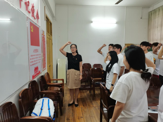 会议尾声,曾彩路带领全体党员重温入党誓词,铿锵誓言在活动室久久回荡。