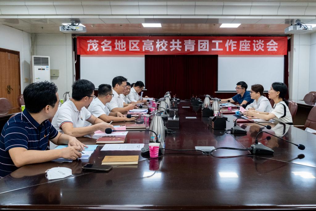 团广东省委学校部部长、一级调研员饶玲,团省委学校部干部、省学联副秘书长韦朝铭,团茂名市委副书记陈甜以及茂名地区各高校共青团相关同志在图书馆208会议室参加了茂名地区高校共青团工作座谈会。各高校围绕“改革创新高校共青团工作,切实增强思想政治引领实效”主题进行了深度交流。与会人员观看了学校共青团工作巡礼视频,听取了校团委负责人关于学校共青团深度融入学校“三全育人”工作格局和“十大育人”工作体系,建立基层党建带团建工作考核机制,探索形成“1+4+5”全过程发现培养学生党员的经验,发挥职能优势助力大学生就业创业,以及疫情防控常态化下重塑共青团和学生会形象的主要做法等工作汇报。饶玲对学校共青团工作成效给予了肯定,并要求茂名地区各高校团委要形成切实增强共青团思想政治引领的工作清单,并扎实实施推进。