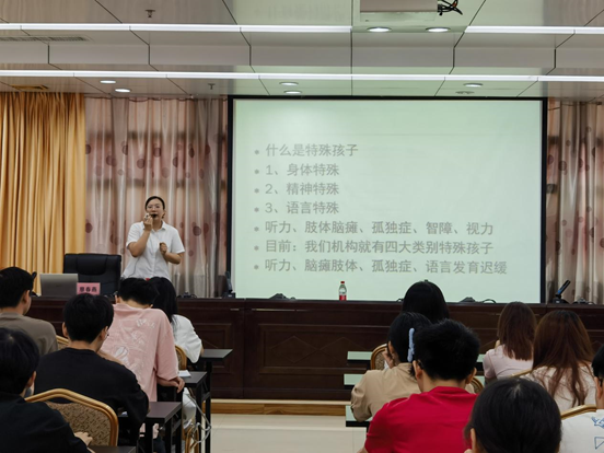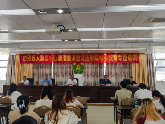 为了培养学前教育专业学生在特殊儿童教育领域的专业素养和实践能力,2024年10月20日,教育系学前教育专业学生们在皮陆杨副主任的带领下,前往茂名市残疾人康复中心,参加特殊儿童法治教育普法宣讲暨教育专题培训。