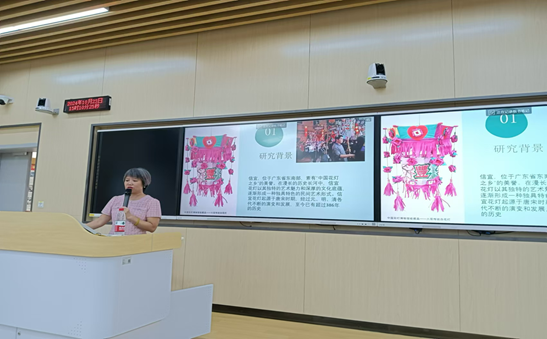 李事明老师围绕“信宜花灯”展开了全面的剖析。她详细阐述了花灯的历史背景,包括花灯的历史渊源与传承历程,以及花灯在信宜地区所占据的重要历史地位。深入讲解了花灯中的传统文化元素,以及花灯与当地民俗、信仰的紧密联系。此外,她还剖析了花灯的社会功能,如花灯在节日庆典中的重要作用,以及花灯作为社区与家庭之间纽带的独特作用。她以甘理明先生对花灯工艺的创新为例,鼓励学生积极传承和发扬传统非遗技艺,并引导大家深入思考传统文化发扬所面临的困境。同时,她还通过对此次课题不足之处的分析,加深了学生对课题研究注意事项的理解。