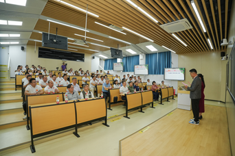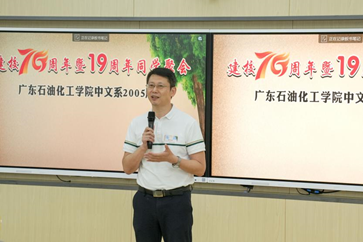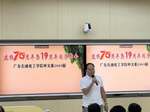 活动伊始,师生共同观看广东石油化工学院建校70周年宣传片《凤鸣南天》,激发了在场师生强烈的情感共鸣。马波院长代表学院致欢迎词,他深情回顾学院与学校的共同成长历程,详细介绍学院近年来的创新举措及办学成效。他谈到,学院自成立以来,始终与学校同心同行,致力于教学与科研的双重发展,培养了大批优秀学子,尤其是师范生的培养为广东基础教育事业输送了众多优秀人才。他希望在场校友关注母校发展,发挥所长携手助力母校迈向新的高峰。学院原党委书记林霞作为教师代表发表讲话。她说,学校在过去的发展中取得了令人瞩目的成绩,特别是教育质量和师资水平的快速提升。当前,学校“申博改大”的目标正在稳步推进,希望校友们继续关心并大力支持学校和学院的发展。