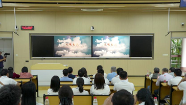 师生共同观看建校70周年宣传片《凤鸣南天》