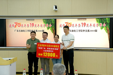 校友代表邹汉波、谢昆、郭彩云、张文杰、赖培泽、朱丽燕、吴康概、李湘粤等分别上台发言。回忆青春时期在母校度过的美好岁月,分享毕业后的工作和成长经历,表达了对母校和老师们的深切感恩,抒发了对母校快速发展所感到的无比自豪。校友们真挚地表示,自己的每一次进步都离不开母校赋予的知识与智慧,离不开母校的培养与支持。随后举行了“聚爱广油,班级捐赠”活动,校友们积极为母校的未来发展贡献爱心与力量,定向捐赠1.2万元。座谈会结束后,校友们参观了校园,感受到了母校日新月异的变化,并在学校图书馆南广场前举行精彩纷呈的团建活动。
