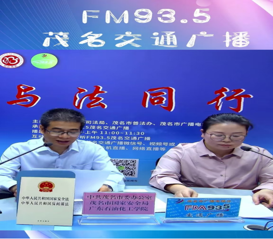 据悉,《与法同行》节目是茂名市为了增强全民法治观念,全面推进依法治市,由茂名市司法局、茂名市普法办与茂名市广播电视台联合主办融媒直播节目。采用“国家机关+仲裁委员会+律师事务所+司法鉴定所+公证处”相结合的模式,根据每期不同的主题,邀请相关领域的嘉宾,就相关法律法规作专业讲解,并接受广大人民群众的咨询和建议。