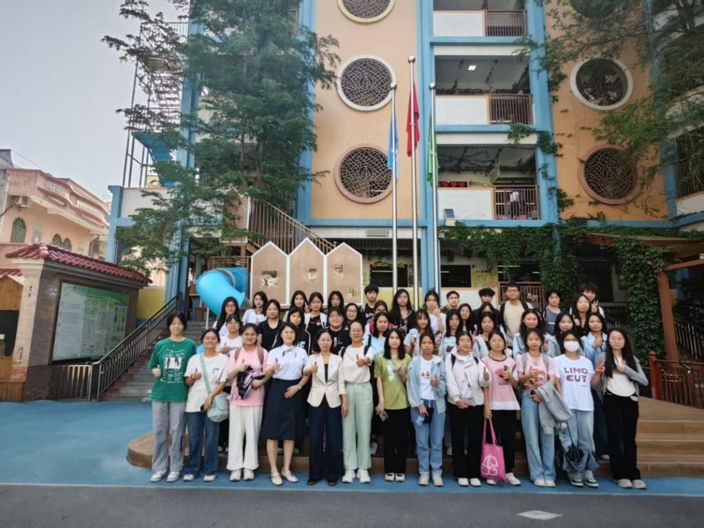 2025年4月14日至18日,我校2024级学前教育专业60余名师生在蒋仕全、皮陆杨、代静等专业教师的带领下,在茂名、佛山、中山三地优质幼儿园开展了为期一周的专业见习活动。此次活动以"深化专业认知、锤炼实践能力"为目标,通过多园所、多模式的实地研学,为学生搭建起理论联系实践的成长桥梁。