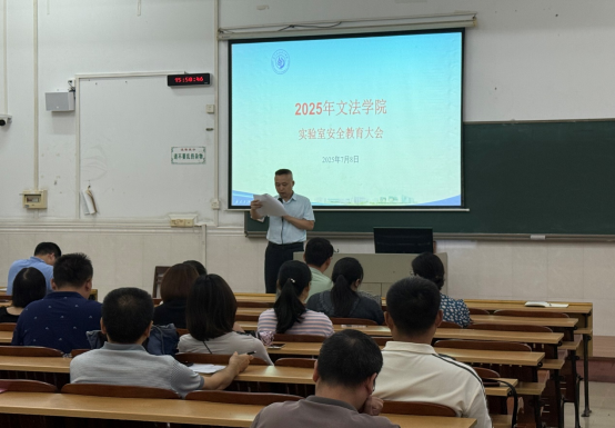为有效防范和遏制安全事故发生,提高教职工实验实训室使用安全意识,7月8日下午,文法学院在二教B栋306室召开实验室安全教育工作大会。姚国军副院长主持会议并讲话,全院教职工参加会议。