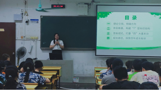 区锦联副院长从职业生涯规划的角度出发,以自己的学习经历为例,引导同学们审视自我发展方向,思考个人职业生涯规划。他还向新生们重点介绍了多项与师范生能力培养密切相关的学科竞赛,并展示往届获奖示例,体现了学校对师范生能力培养的高度重视,并以此为契机鼓励同学们以赛促学、以练促能,在实践中打磨师范生技能。
