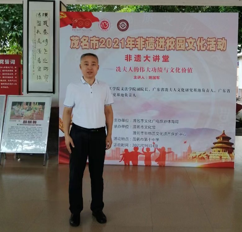 姚国军,男,教授,广东冼夫人与非遗文化社科普及基地负责人、冼夫人与非遗文化大学生社会实践教学基地负责人。主要研究方向为:中国现代文学、岭南文化。主讲课程为:《中国现代文学》、《现代作家作品研究》、《大学语文》、《基础写作》、《应用写作》等。先后在《鲁迅研究月刊》、《山东社会科学》、《甘肃社会科学》、《中国社会科学报》、《新华每日电讯》、《文艺报》等报刊发表学术论文50篇,先后主持广东省哲学社会科学规划项目、广东省教育科学规划项目、广东省一流本科课程项目、广东省本科教学质量工程项目等省级项目,先后获全国高校微课教学大赛广东省本科组二等奖、广东省社科学术年会优秀论文三等奖、茂名市哲学社会科学优秀成果二等奖、茂名市建市60周年专题研讨会优秀论文一等奖、获广东省高校美育优秀案例三等奖。