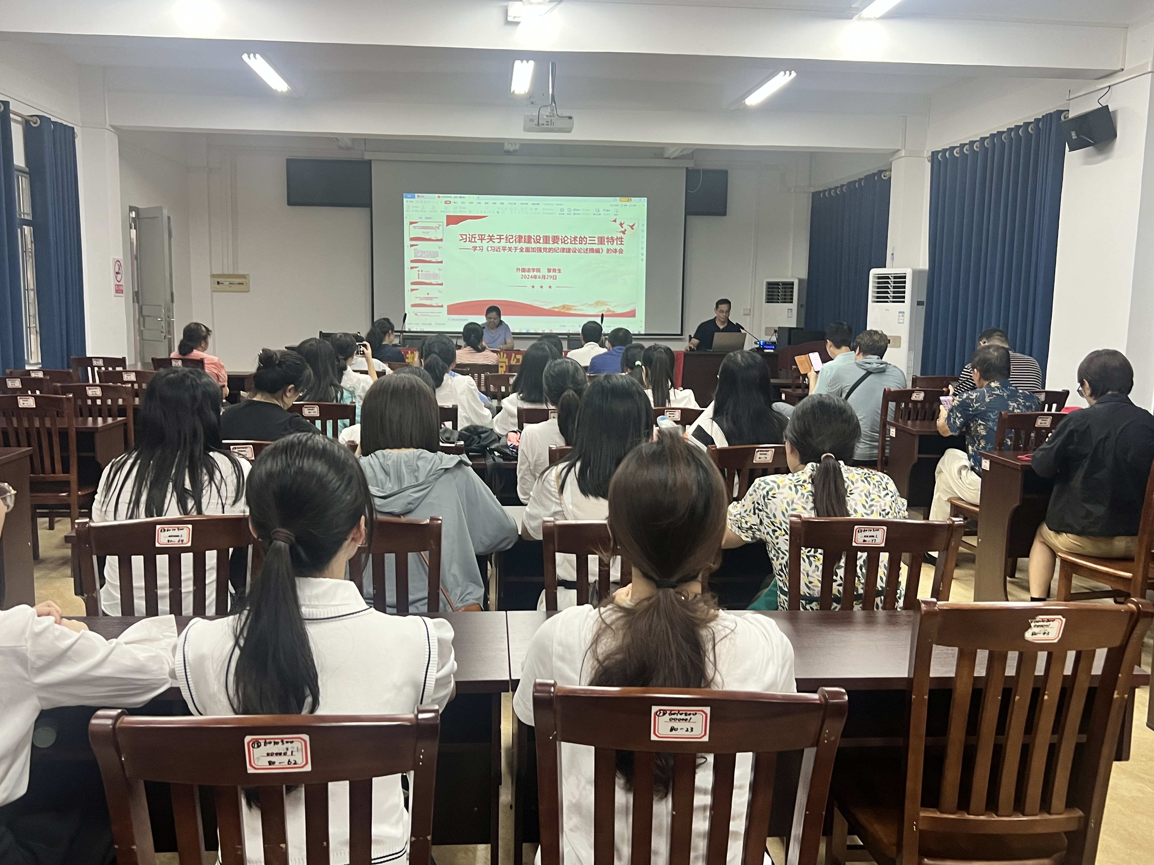 黎育生强调,中国共产党是靠革命理想和铁的纪律组织起来的马克思主义政党,纪律严明是中国共产党的优良传统和独特优势。新征程上,我们要坚持以习近平新时代中国特色社会主义思想为指导,认真学习贯彻习近平总书记关于全面加强党的纪律建设重要论述,不断增强纪律意识和廉政素质,切实做到学纪、知纪、明纪、守纪,以严格的纪律团结力量,不断推进学院事业高质量发展。