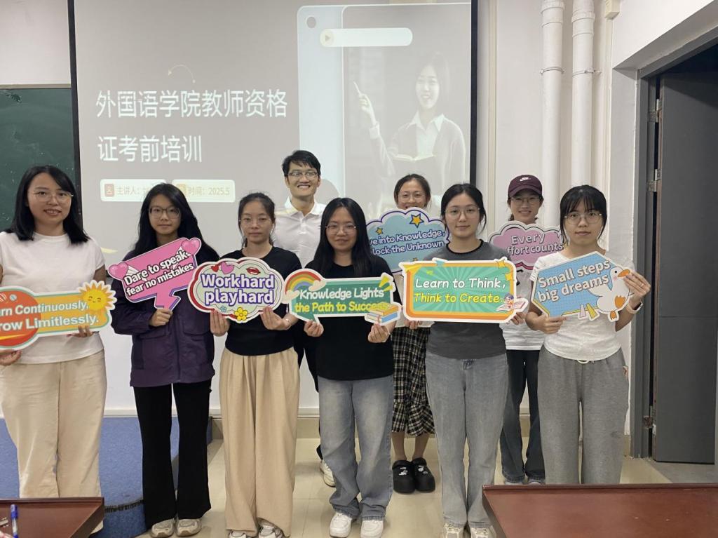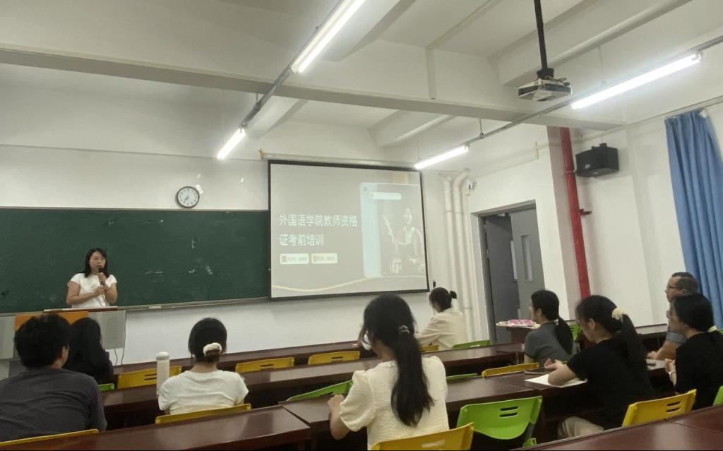为助力学生备考教师资格证面试,5月14日18:30,一场针对性强的考前指导活动在外语楼南 403 教室开展。秦毅教授、辅导员刘荷花、丁红涛及备考学生参与活动。