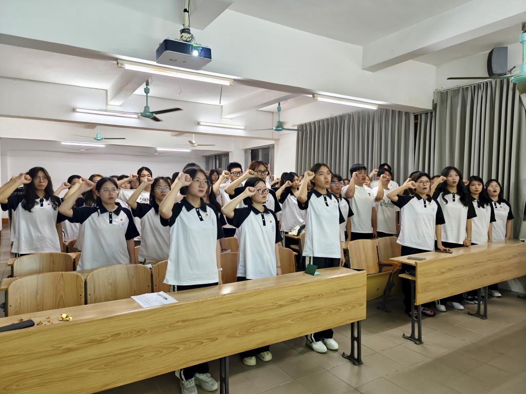 仪式在庄严的国歌声中拉开帷幕,全体师生肃立齐唱国歌,现场氛围庄重热烈。经过严格选拔,一批优秀同学光荣加入中国共产主义青年团,为团组织注入了新鲜力量。随后,新团员面向团旗,右手握拳庄严宣誓,铿锵誓言表达了他们坚定的信念与为共产主义事业奋斗的决心。