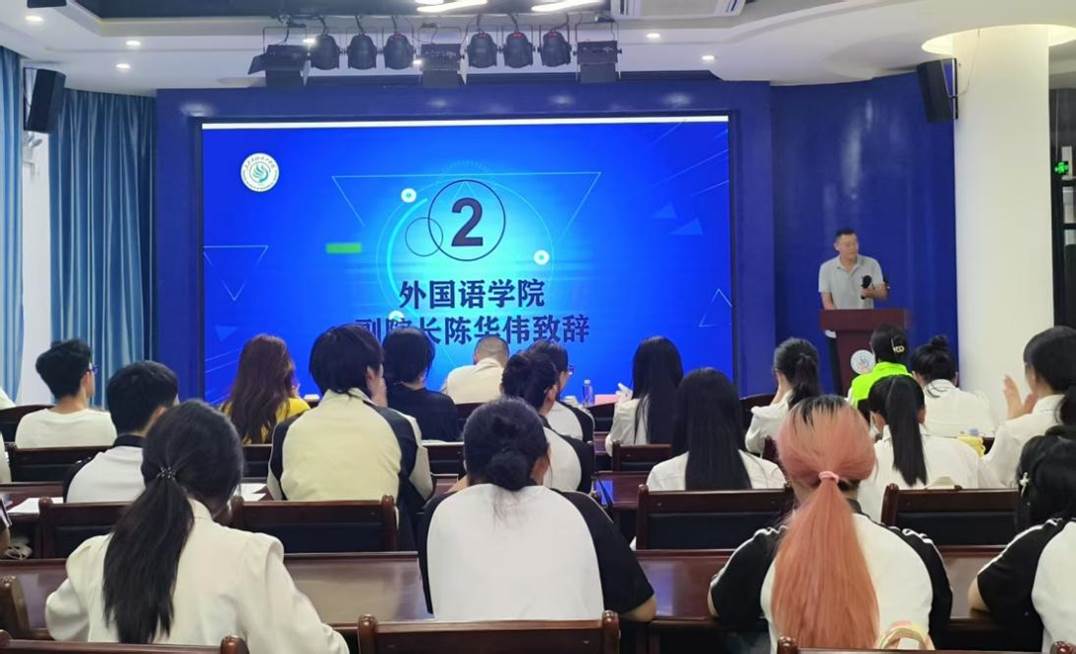 外国语学院副院长陈华伟在致辞中鼓励参赛选手勇于创新、挑战自我,将课堂所学与实践结合,以提升综合竞争力。他表示,学院将始终支持学生成长,并期待大家在比赛中取得优异成绩。