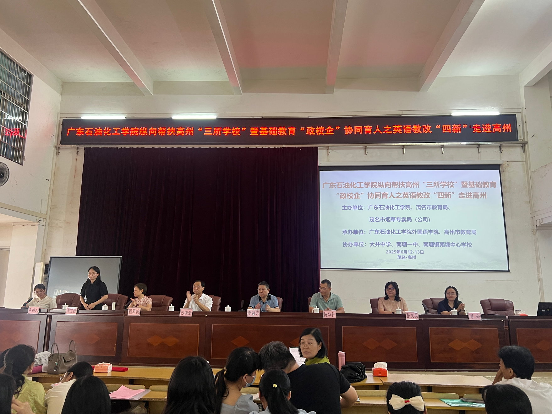 6月12-13日,广东石油化工学院联合茂名市教育局、茂名市烟草专卖局(公司)在高州市开展了解构高考命题、冲刺中考备考和小学英语素养提升等(新高考、新中考、新课标、新教材)活动。广东石油化工学院外国语学院、高州市教师发展中心、茂名市烟草专卖局(公司)及茂名市委组织部驻南塘镇乡村振兴帮扶工作队等单位领导参加了活动。