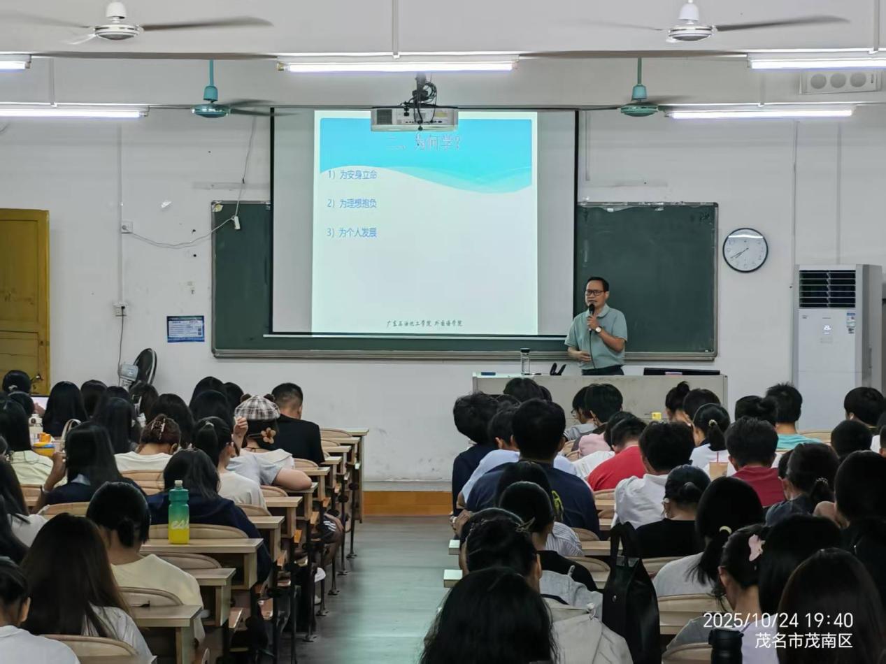 9月25日,学院党委书记黎育生为2025级新生上入党启蒙课,从灵魂、价值等维度剖析“中国共产党为什么‘能’”,并邀请新生同唱红色经典曲目。激昂的歌声里,新生坚定理想信念,共鸣强烈,立志将青春融入党和国家事业。