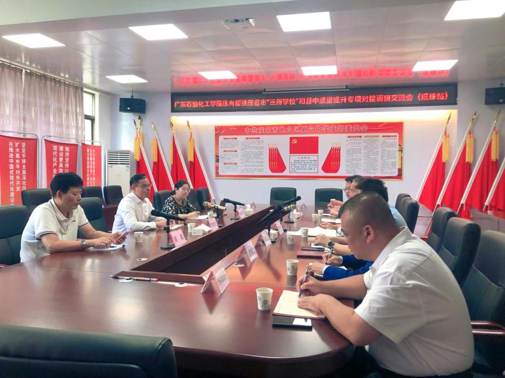 为深入落实省委省政府基础教育高质量发展决策部署,进一步推进帮扶茂名市“三所学校”和县中质量提升,11 月 11 日上午,外国语学院党委书记黎育生、党委副书记强静雨一行赴电白区第六中学召开对接调研交流会。观珠镇相关学校主要负责人及有关领导参加了会议。