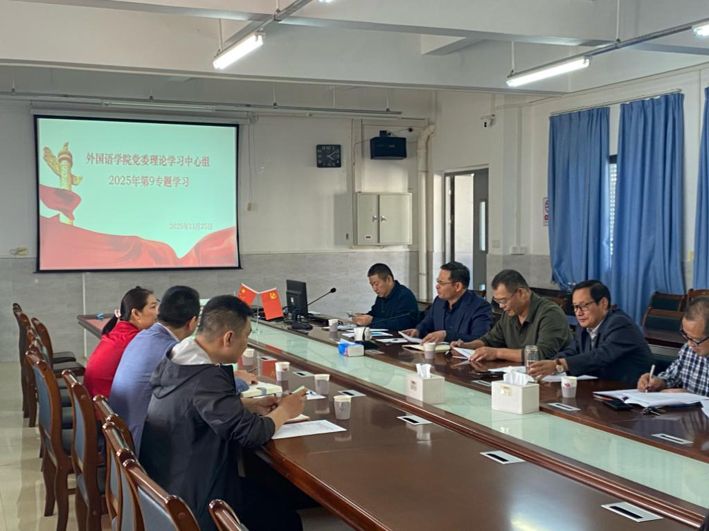 11月25日,外国语学院召开党委理论学习中心组集体学习会,就深入学习领会习近平总书记关于全面深化改革的一系列新思想、新观点、新论断开展专题学习。党委书记黎育生主持会议,学工部部长刘国平、宣传部副部长周海燕到会指导。