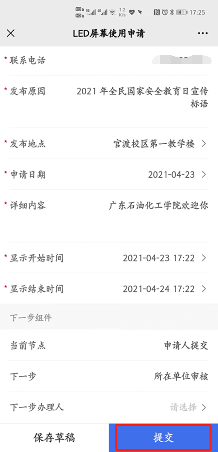 申请时务必将申请时间填写清楚以便后续管理方对LED屏幕的使用进行安排。