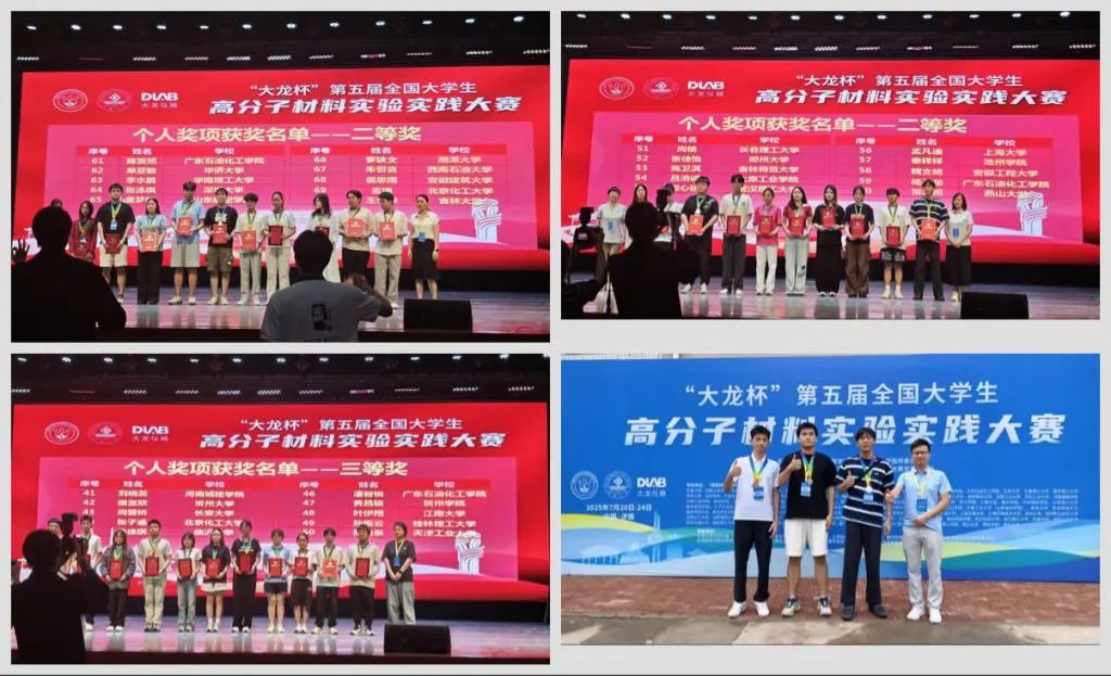 近日,“大龙杯”第五届全国大学生高分子材料实验实践大赛在济南落下帷幕。学校参赛队伍表现优异,杨子龙、陈旨旭两位同学荣获全国二等奖,潘智锐同学获得全国三等奖。