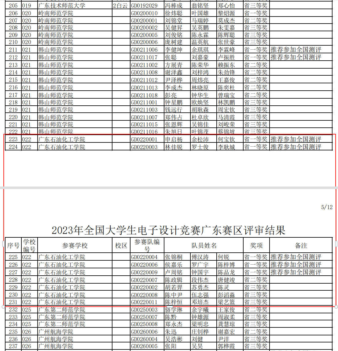 2023年全国大学生电子设计竞赛广东赛区获奖名单 图