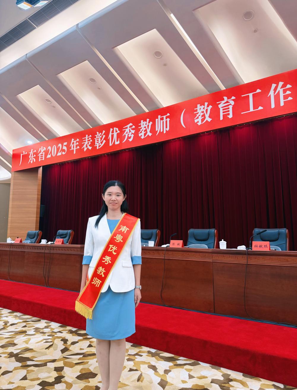 9月11日,广东省2025年表彰优秀教师(教育工作者)大会在广州召开,我院电子02-3班校友刘玉洁荣获“南粤优秀教师”称号。