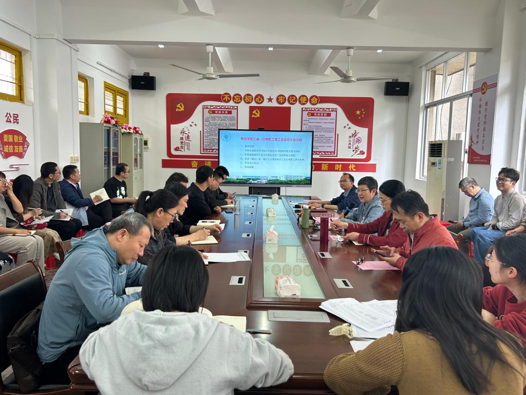 2026年3月17日下午,电子信息工程学院在中专楼217会议室召开三届一次教职工暨工会会员大会。会议由学院院长张磊主持,大会在庄严的国歌声中开幕。