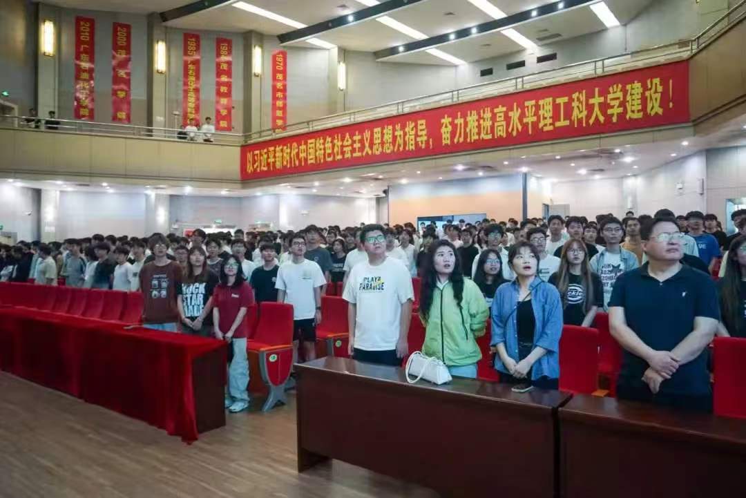 大会在激昂嘹亮的校歌声中正式拉开帷幕,全体师生齐声合唱,尽显电信学子昂扬向上的精神风貌,也承载着学院坚守育人初心、助力青年成长的使命担当。