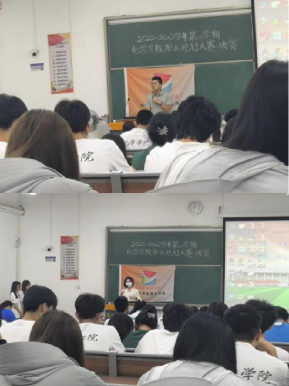 为引导大学生以科学的态度规划职业生涯,树立正确的人生目标和就业观念,增强学生职业规划能力,2023年5月24日晚,2023年化学学院职业生涯规划大赛在综合教学楼J07成功举行。化学学院团委负责老师黎明,化学学院易班工作站指导老师梁睿智以及易班工作站主席团成员担任了本次大赛评委。