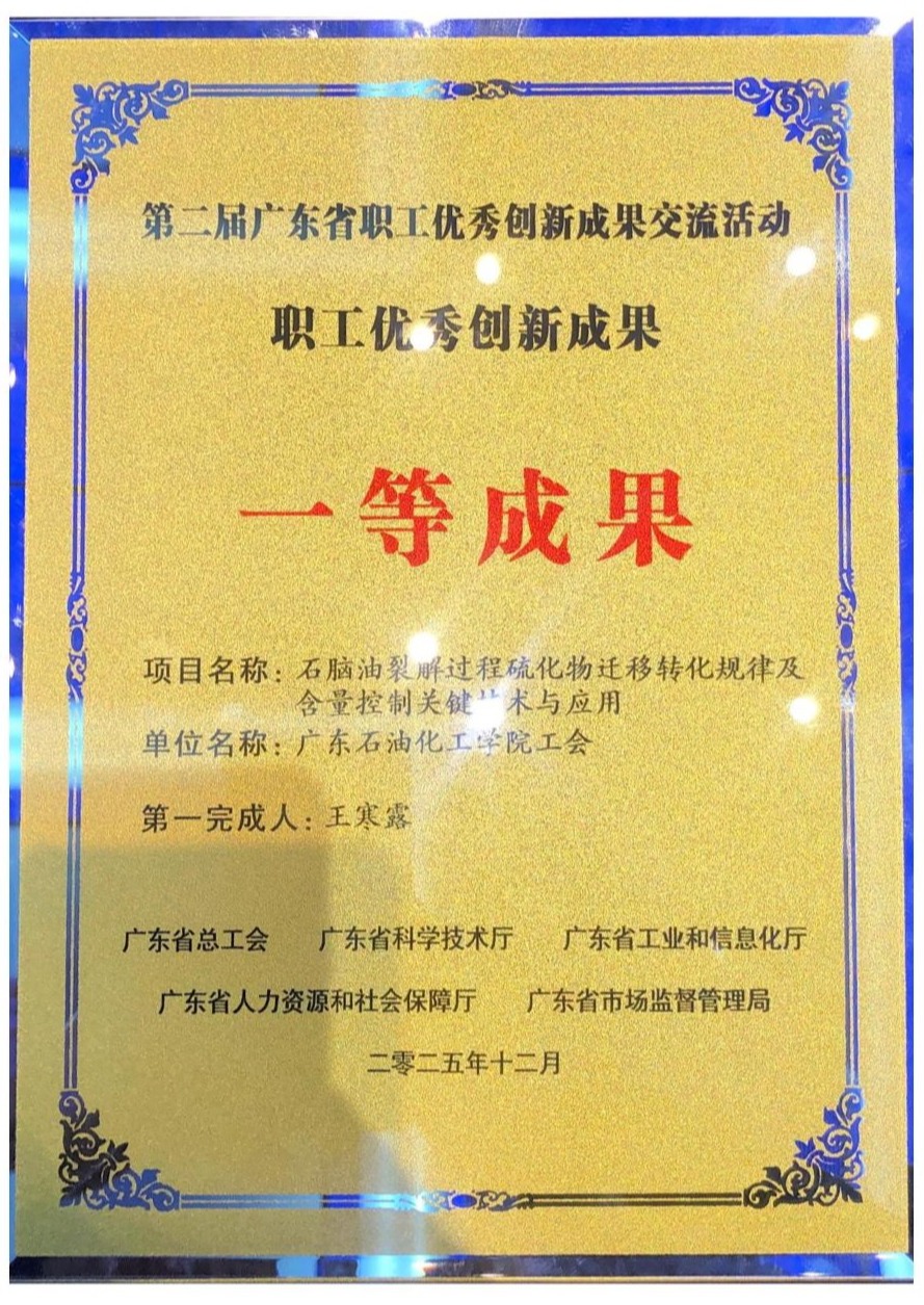 12月25日,由广东省总工会、省科学技术厅、省工业和信息化厅、省人力资源和社会保障厅、省市场监督管理局五部门联合举办的第二届广东省职工优秀创新成果交流活动圆满落幕。我校王寒露老师申报的“石脑油裂解过程硫化物迁移转化规律及含量控制关键技术与应用”项目荣获“职工优秀创新成果”一等奖和最具投资价值奖,并在广州市知识城国际会展中心进行了成果展示与模拟投资路演。