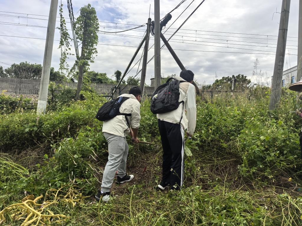 劳动现场一派热火朝天的景象。同学们分工明确,协作有序。一部分同学手持工具,认真清理着道路两侧及角落滋生的杂草,他们或弯腰拔除,或挥锹铲断,动作从生疏逐渐变得熟练;另一部分同学则负责清扫路面堆积的落叶、碎石,并将收集的垃圾进行分类归置。面对杂乱的草丛和沉积的污垢,同学们发扬了不怕脏、不怕累的精神,汗水浸湿了衣衫,但大家的劳动热情丝毫未减,欢声笑语与辛勤劳作的身影交织在一起,形成了田间地头一道亮丽的风景线。