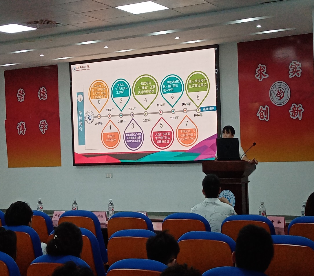 党委副书记叶芸介绍了学院概况。学院成立于1985年,现有四系一中心、五个本科专业,师资力量雄厚,教学成果显著。她还详细说明了学生管理、奖助政策、志愿服务和纪律要求等内容,并鼓励大家尽早规划,积极准备英语等级考试和专业资格证书考试。