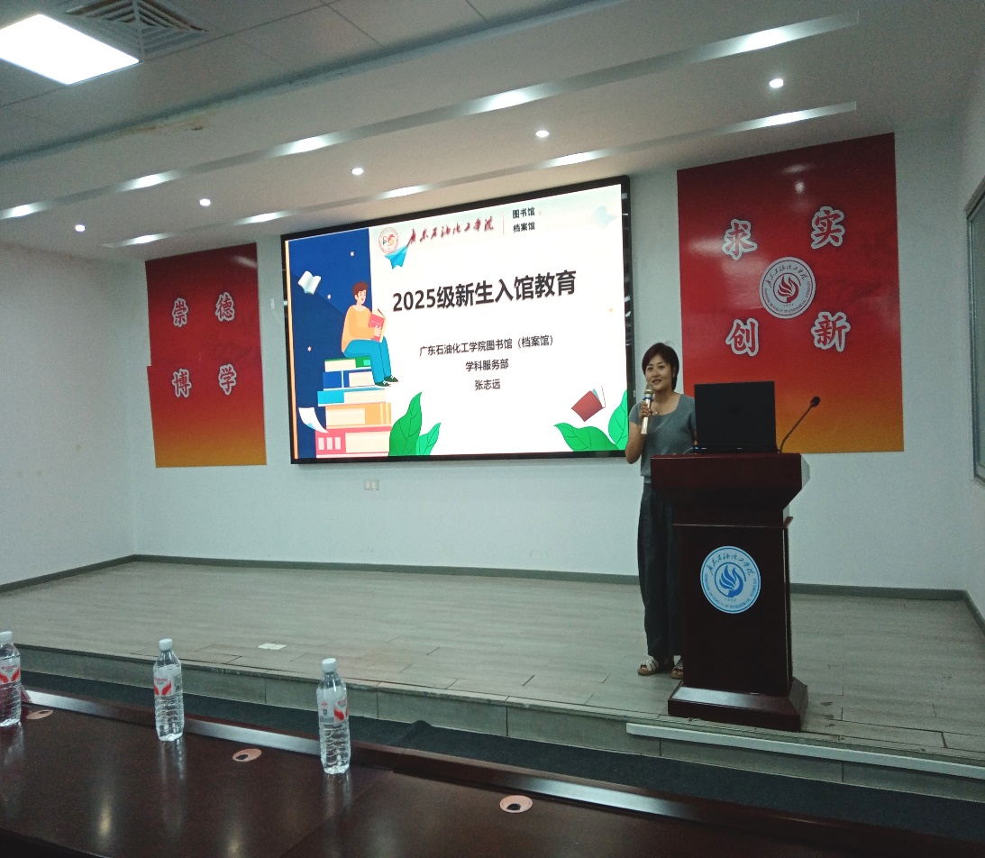 图书馆学科服务部主任张志远介绍了馆内资源与服务,包括2.2万平方米馆舍、35个中外数据库、跨校区借阅服务及多种学习支持活动,鼓励新生积极利用图书馆资源,养成良好的学习习惯。