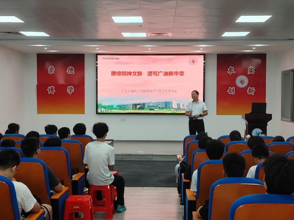 李东通过一系列生动的历史案例,系统讲述了学校自创建以来的发展历程,重点回顾了广油西迁的艰难过程以及其中涌现的感人事迹。他深入阐释了“西迁精神”“评估精神”“申硕精神”等广油优良传统,展现了学校一路创业、自强不息的奋斗历程,以及一代代广油人艰苦拼搏、不断进步的成长故事。李东勉励同学们要践行“崇德、博学、求实、创新”的校训,将个人成长与国家和地方的发展紧密结合,努力成长为肩负民族复兴重任的时代新人。