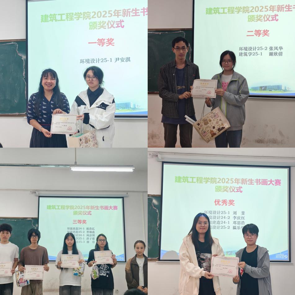 2025年12月3日,建筑工程学院在西城建工楼A202举行2025年新生书画大赛颁奖仪式,学院党委副书记叶芸,辅导员王志明、刘健坤、吴晓庭,学生会主席麦炜姗同学担任嘉宾,获奖选手和学生代表近70人参加。