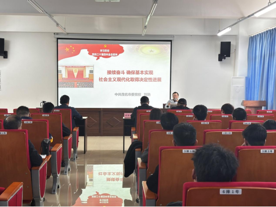11月21日,建筑工程学院在建工楼A514报告厅开展学习贯彻党的二十届四中全会精神宣讲报告会,邀请茂名市委党校四级调研员、茂名市委理论宣讲专家团成员、副教授刘艳作专题报告。会议由党委书记严君洲主持,学院师生80余人参加报告会。