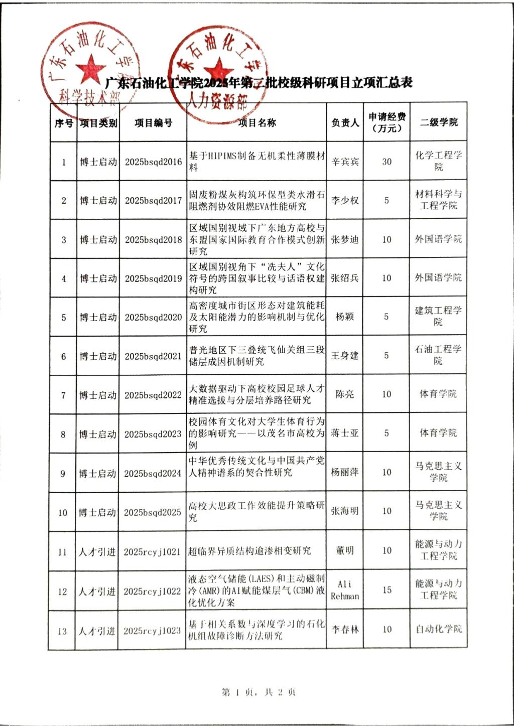 关于下达2025年第二批广东石油化工学院校级科研基金项目的通知.pdf