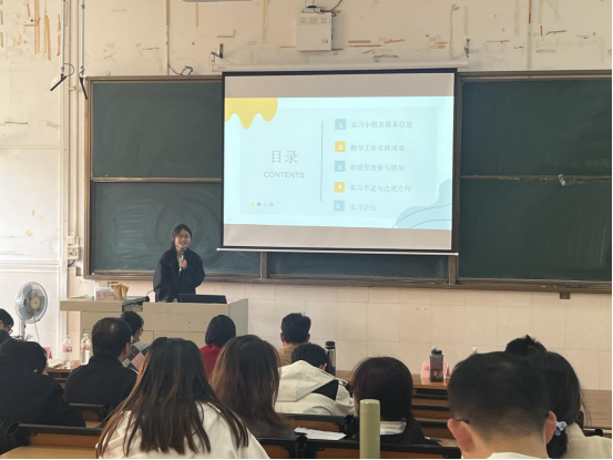 首先,各实习队实习生代表们进行了实习队总结汇报及课例汇报。各实习队队长以小视频、PPT展示等形式,分别对各实习队在课堂教学、班级管理、教育调查研究及实习队日常管理等工作进行汇报,分享各实习队的收获和实习感悟。实习队的汇报各具特色,生动地展示了丰富而充实的实习生活。