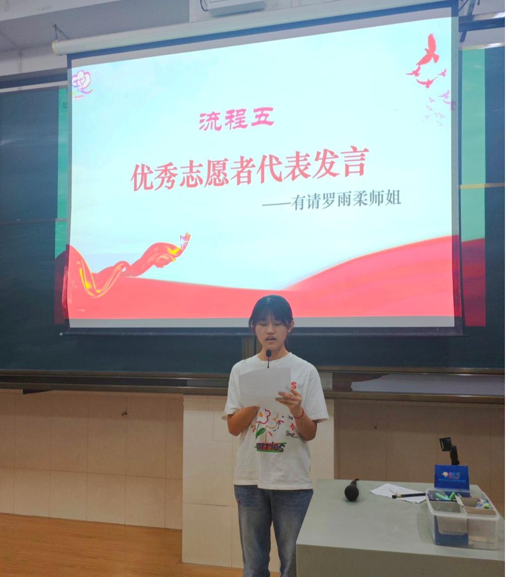 会上播放了理学院青志协2023-2024年视频回顾,奏唱了《中国青年志愿者之歌》。学院青志协会长张鹏宇师兄对阶段工作进行了总结及做下阶段工作安排,优秀志愿者代表分享了自己在志愿服务过程中的体会和成长。新生志愿者代表发言表达了对志愿活动的热爱。随后宣誓仪式正式开始,全体青年志愿者肃立,高举右手,紧握拳头,郑重宣誓。他们的声音铿锵有力,充满激情,表达了对服务社会、帮助他人的坚定决心。