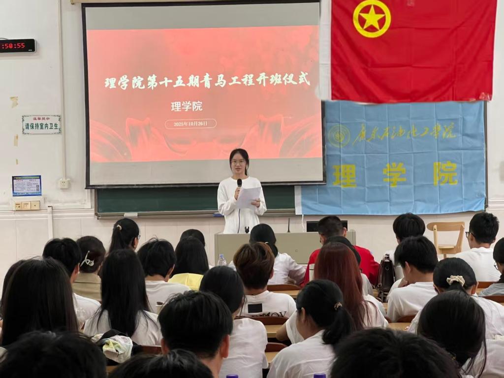 10月26日上午9:30,理学院在官渡校区二教B205教室举行广东石油化工学院理学院第十五期“青年马克思主义者培养工程”学习班开班仪式。学院党委副书记符清桓、团委书记庞伟连出席,六大机构主席团、青马全体学员参会。