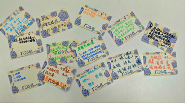 在优点书写与匿名留言环节,教室陷入安静的思考。每位同学认真写下自己的三个优点,纸张在匿名流转中承载着同伴们的真诚鼓励。“佩服你的坚持!”“你的乐观感染了我!”……短短25分钟内,简单的纸张变成了满载正能量的珍贵礼物。当同学们重新拿到写满他人鼓励的纸条时,脸上绽放的笑容是对这个环节最好的肯定。