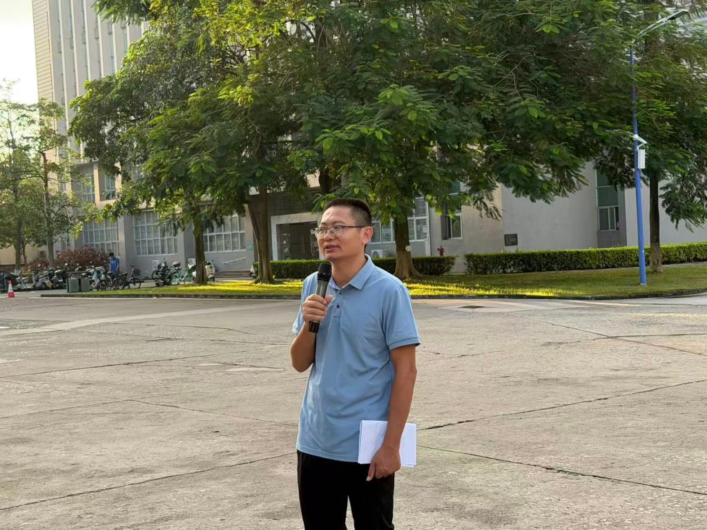 10月13日上午7时,理学院师生共同参与了一场庄严而神圣的升国旗仪式。此次活动由新生辅导员周洁容老师主持,学院党委副书记符清桓亲临现场,与新生们共同见证了这一重要时刻。